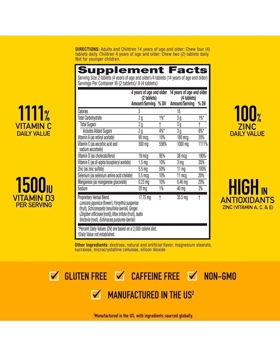 - Antioxidantes potentes: Las tabletas masticables de soporte inmunológico de Airborne contienen los poderosos antioxidantes vitamina A, vitamina C, vitamina D (para apoyar la salud inmunológica) y vitamina E (para ayudar a combatir los radicales libres).