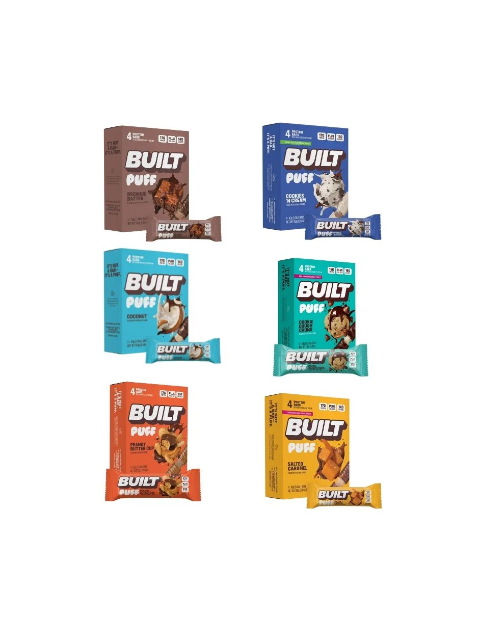 La barra de proteína tipo puff es una alternativa práctica y deliciosa para quienes buscan un snack alto en proteína con una textura suave y diferente. Esta presentación incluye una caja con 4 barras individuales, ofrece entre 15g y 17g de proteína por unidad, elaborada con una combinación de proteínas de alta calidad e ingredientes seleccionados.