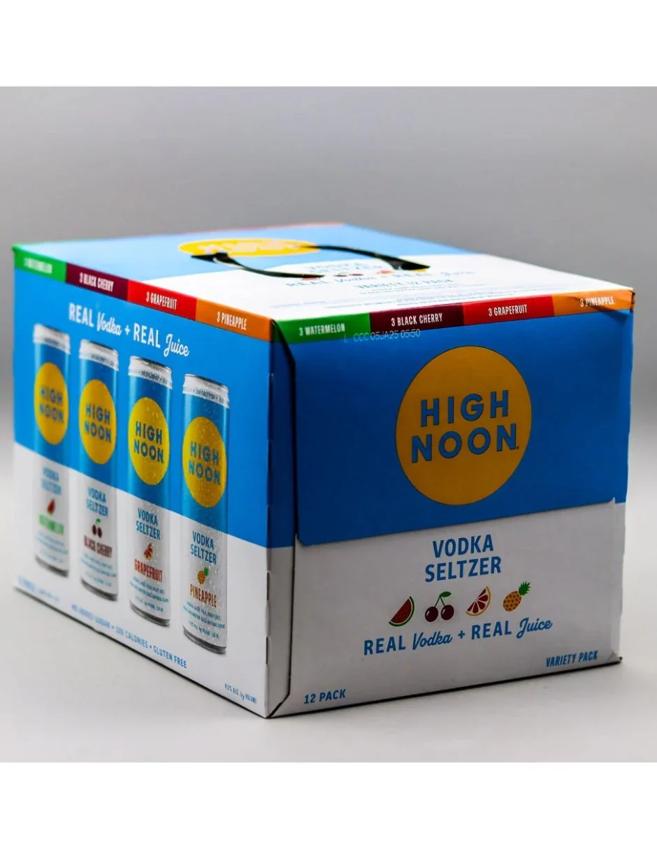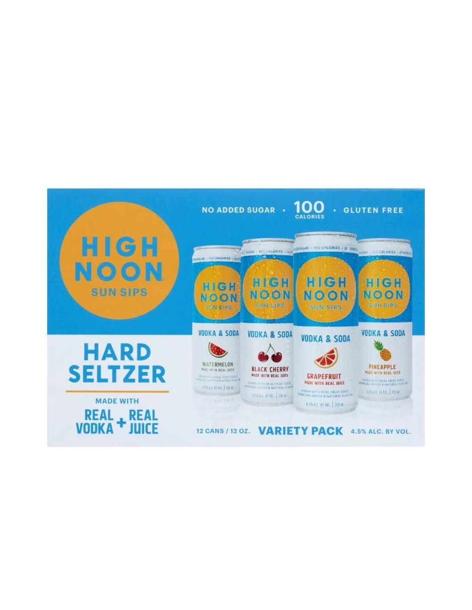 Disfruta la frescura y el sabor natural de High Noon Hard Seltzer Surtido Original, una bebida ligera con gas elaborada con vodka real, agua con gas y jugo natural de frutas.