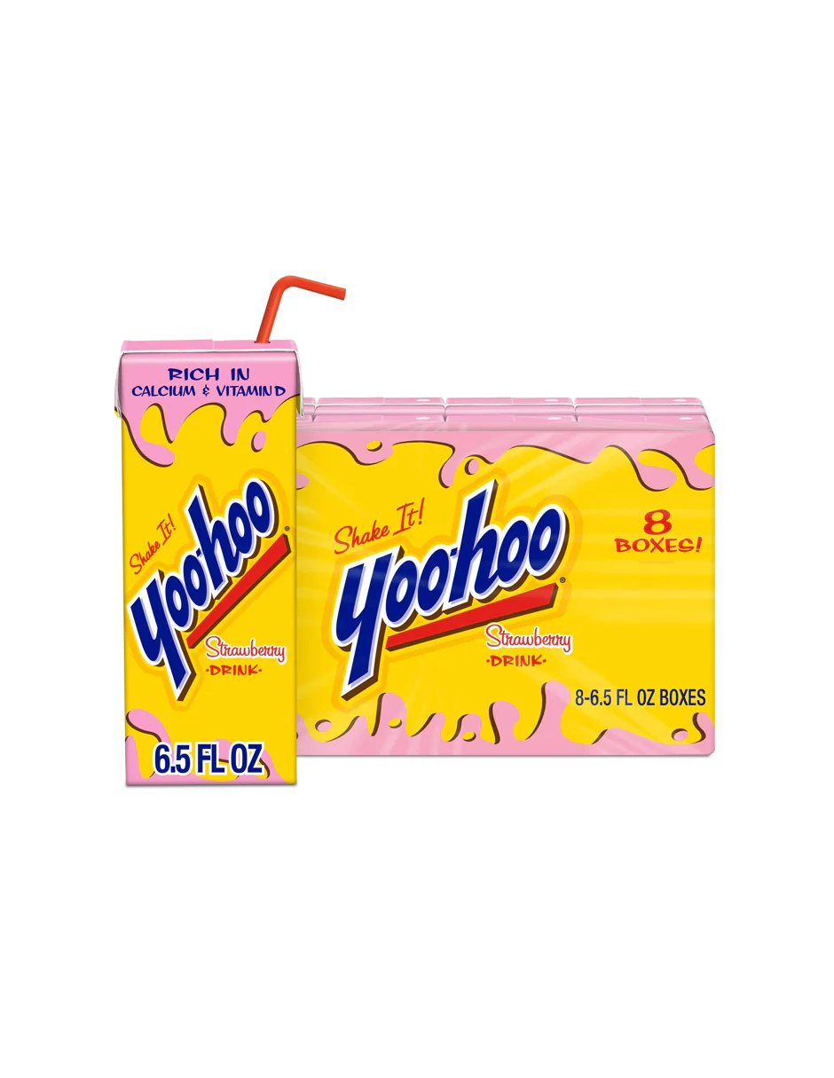 La Bebida Yoo-hoo de Fresa ofrece un sabor intenso, suave y delicioso que encanta a chicos y grandes. Su consistencia ligera la hace perfecta para acompañar cualquier snack o disfrutar en cualquier momento del día. Está elaborada sin cafeína, con 99 % menos grasa y enriquecida con calcio y vitamina D. Presentación de 8 cajas de 180 ml, listas para llevar.