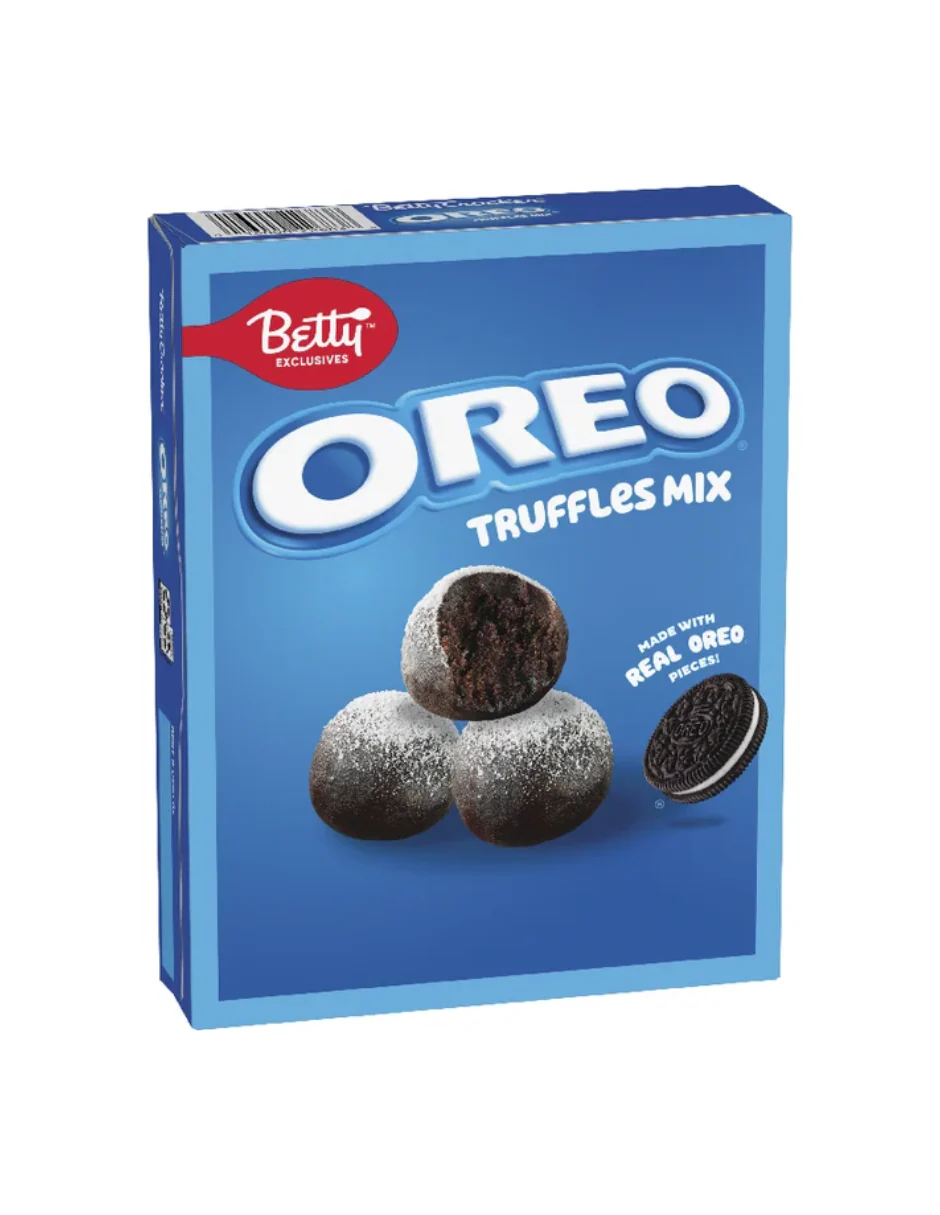 Prepara trufas irresistibles en minutos con la mezcla para trufas Oreo de Betty Crocker, hecha con auténticos trozos de galleta Oreo y azúcar glass. Este postre sin hornear es rápido, práctico y delicioso: solo mezcla con mantequilla y agua, refrigera y disfruta. Ideal para fiestas, antojos entre semana o como regalo dulce hecho en casa. Cada caja rinde aproximadamente 6 porciones que encantan a niños y adultos. Lleva la magia de Oreo a tu cocina con esta mezcla que combina sabor, conveniencia y el sello de calidad de Betty Crocker.