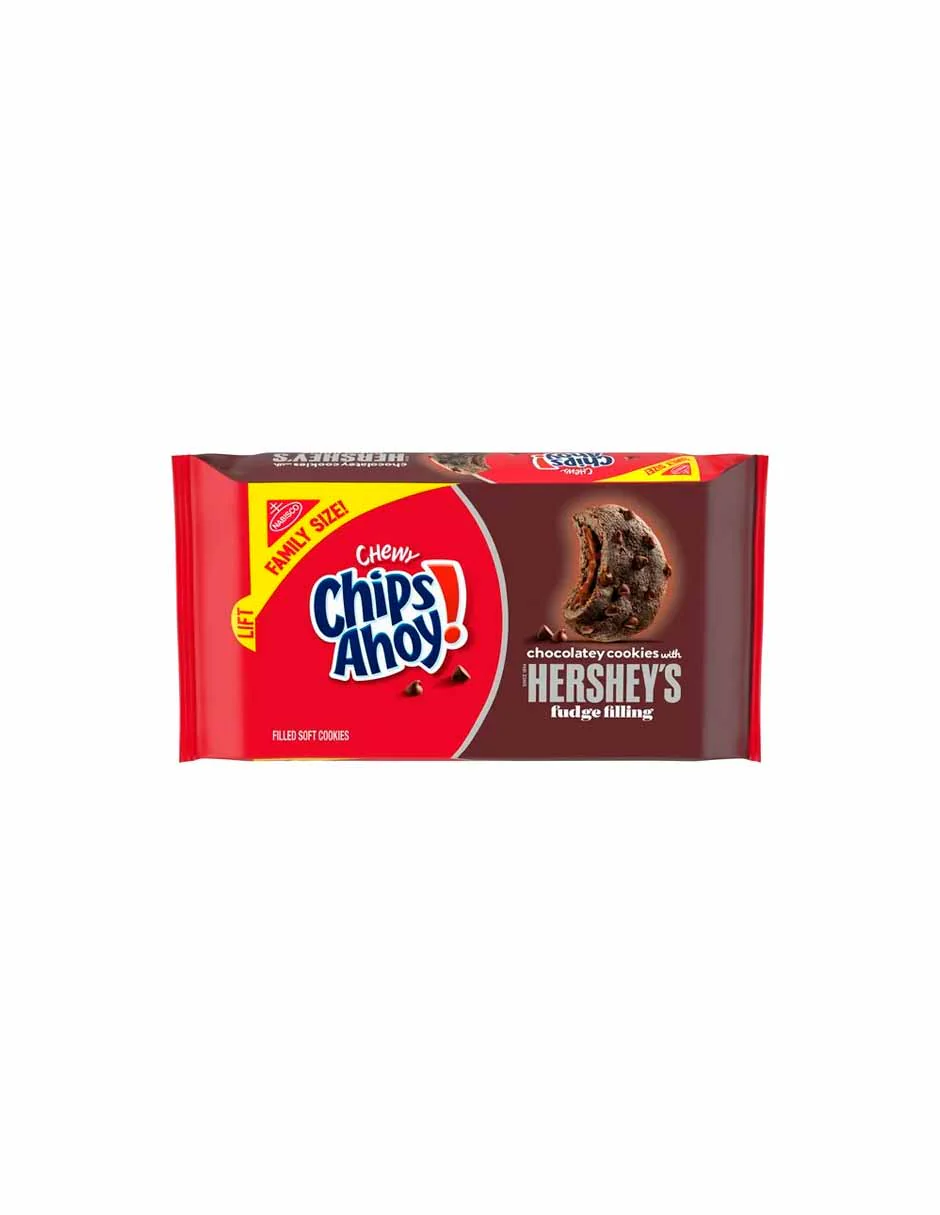 ¡Un paquete familiar de CHIPS AHOY de 14.85 oz! Galletas masticables de chocolate con relleno de dulce de azúcar Hershey’s