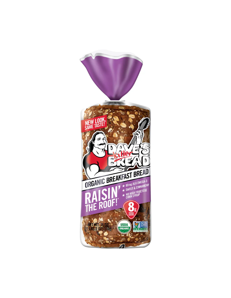 - Obtendrás 18 oz. hogaza de pan de desayuno Dave’s Killer Bread® Raisin’ The Roof!® rebanado