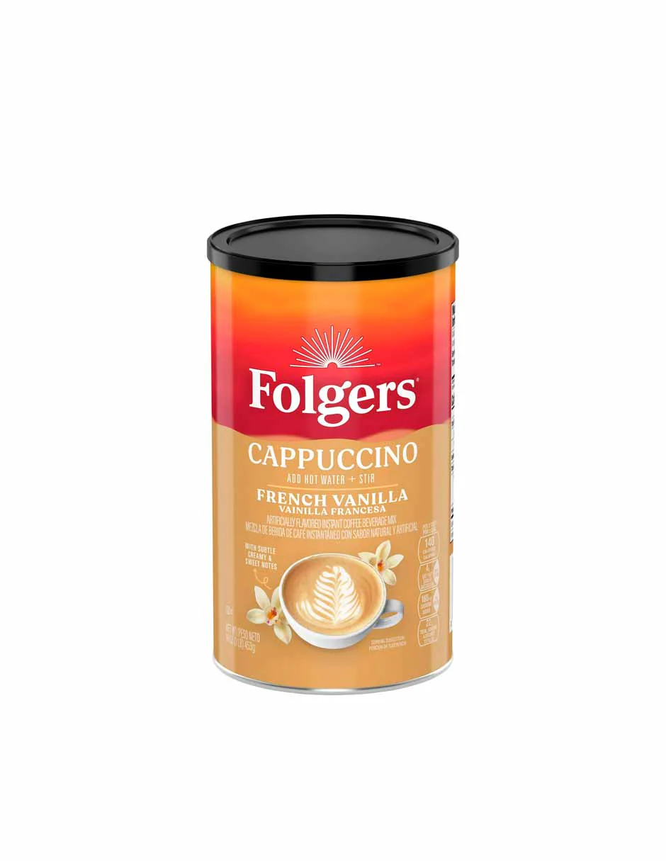 Folgers mezcla capuchino con sabor a vainilla francesa instantáneo 453gr