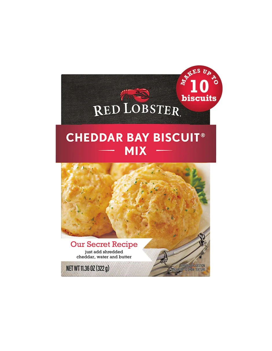 ¡Directamente de nuestras cocinas a la tuya, es nuestra receta secreta de galletas de langosta roja y cheddar Bay Biscuit! Simplemente agregue agua, queso cheddar y mantequilla para crear las mismas galletas Cheddar Bay que servimos en nuestros restaurantes. Sírvelos frescos con tu comida o como un bocadillo salado para familiares y amigos.