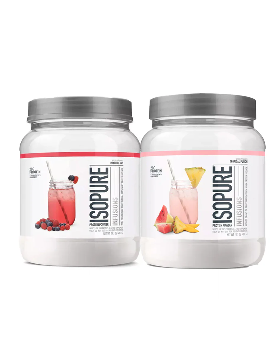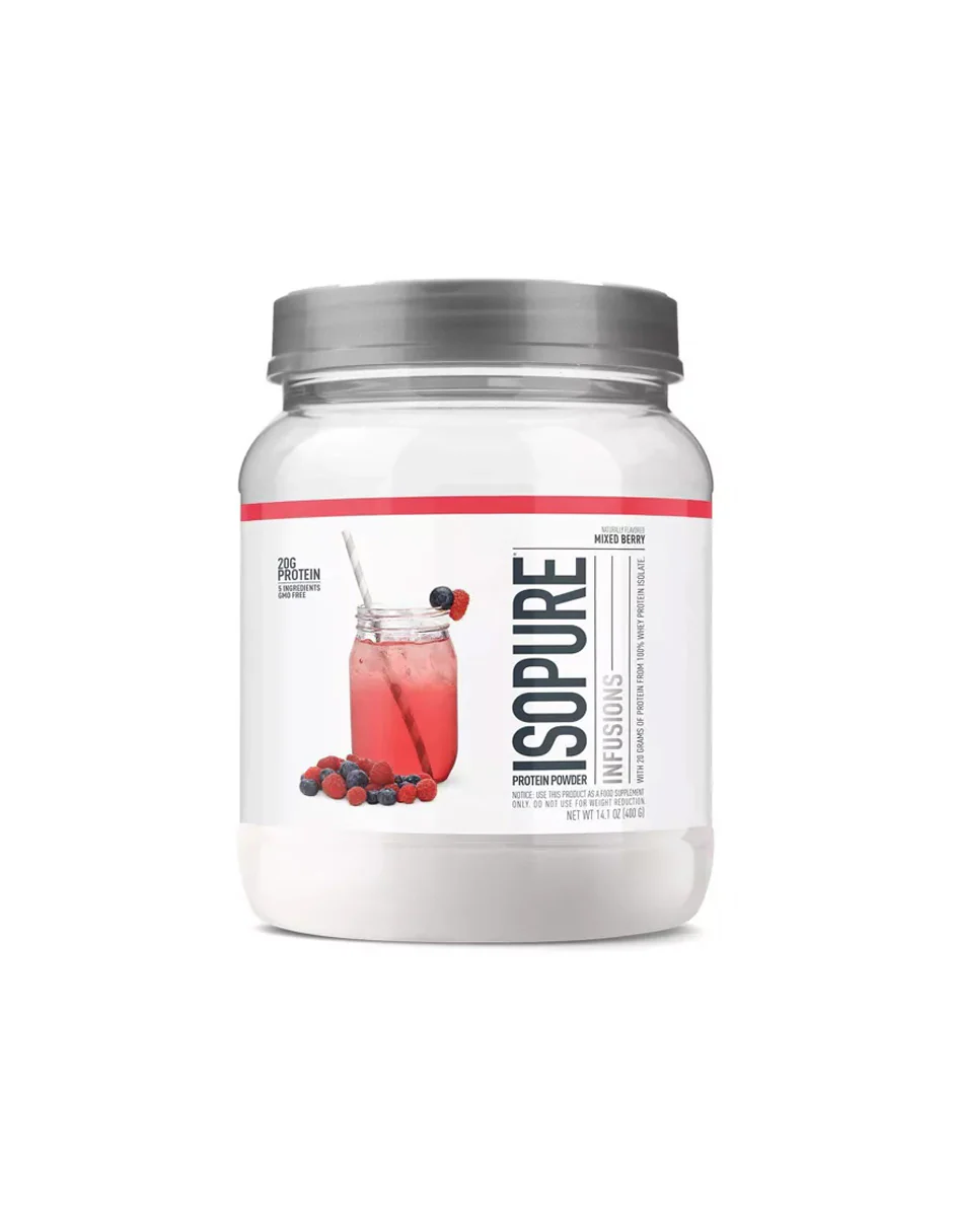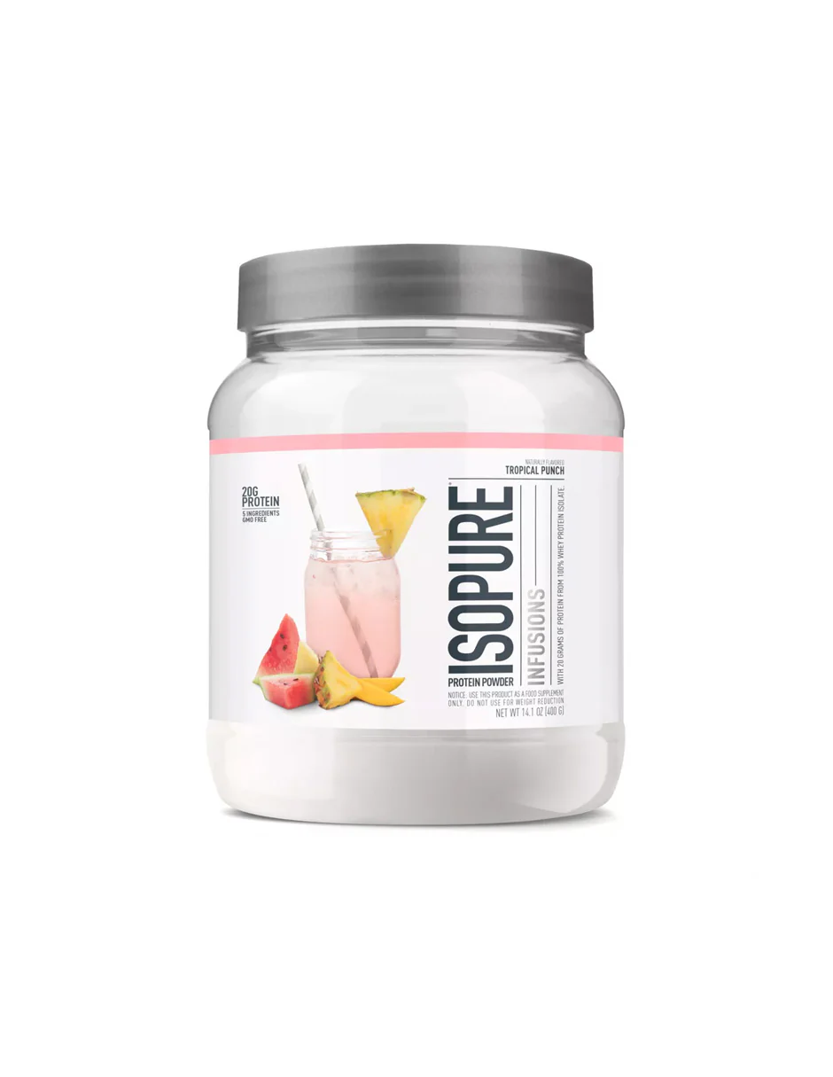 Suero libre de rBSTISOPURE INFUSIONS no es la típica proteína en polvo parecida a un batido.Es una mezcla refrescante, ligera y con sabor a fruta que proporciona la proteína que deseas sin una larga lista de ingredientes que no necesitas. Vierta de 10 a 16 onzas de agua fría en una coctelera, agregue una cucharada de ISOPURE INFUSIONS, cierre y agite. Luego, observe cómo se infunden 20 gramos de aislado de proteína de suero 100% en una bebida refrescante, colorida y translúcida. Lo que ves es lo que obtienes: 5 ingredientes sin grasa, azúcares añadidos, sabores ni colorantes artificiales. Sencillo, potente y delicioso.