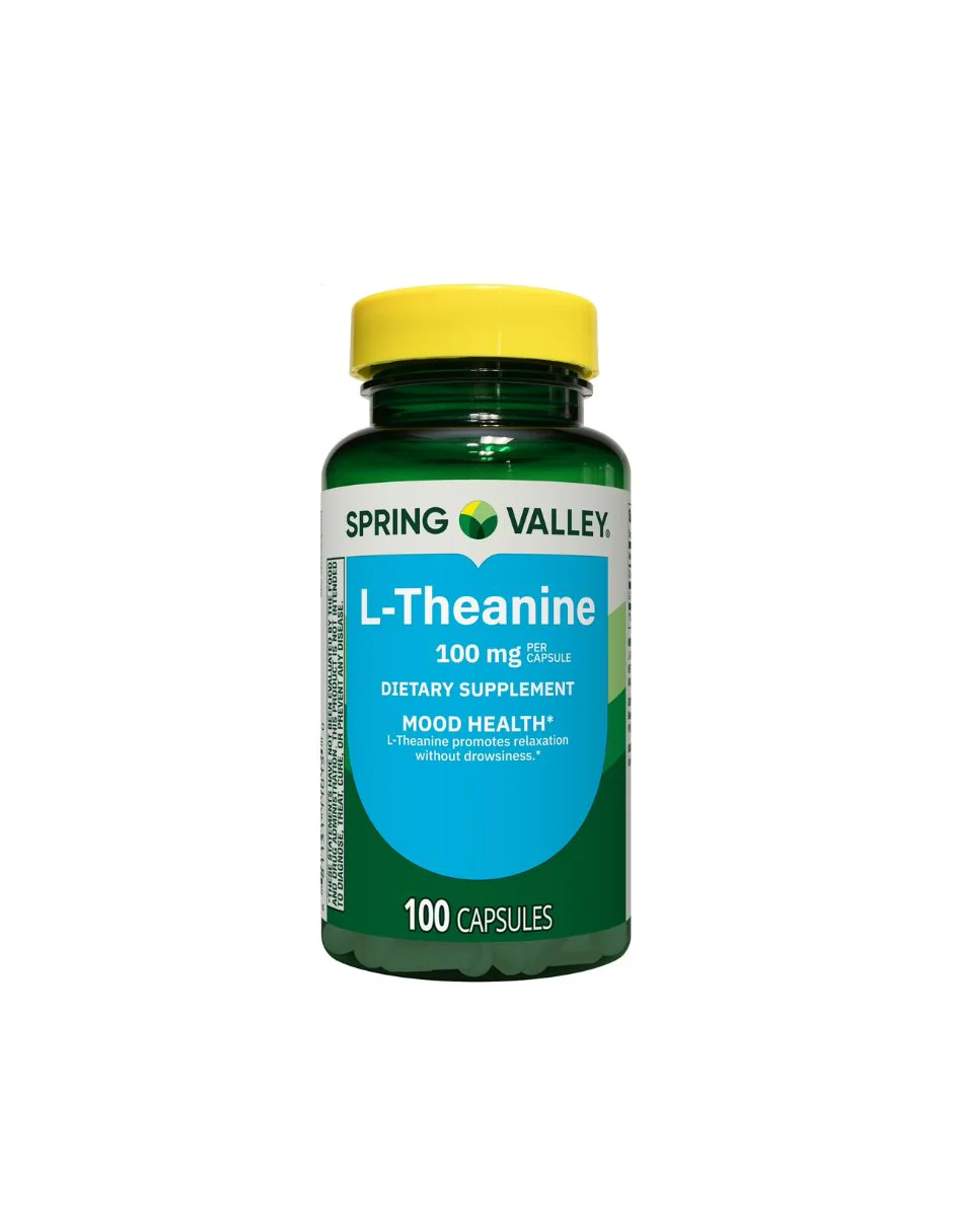 El suplemento dietético L-Teanina de Spring Valley ofrece 100 mg por cápsula para favorecer la relajación y el enfoque mental sin causar somnolencia*. Ideal para quienes buscan bienestar emocional y claridad mental durante el día.