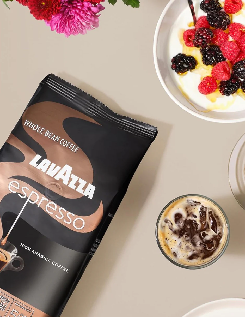 Disfruta del auténtico sabor italiano con Lavazza Espresso, un café en grano 100% arábica de tostado medio con intensidad equilibrada (5/10). Ofrece notas aromáticas florales y frutales que aportan dulzura y suavidad en cada taza. Ideal para preparar espresso, moka, café por goteo o prensa francesa. Elaborado con granos seleccionados de América del Sur y África, este café premium garantiza una experiencia aromática excepcional y consistente.