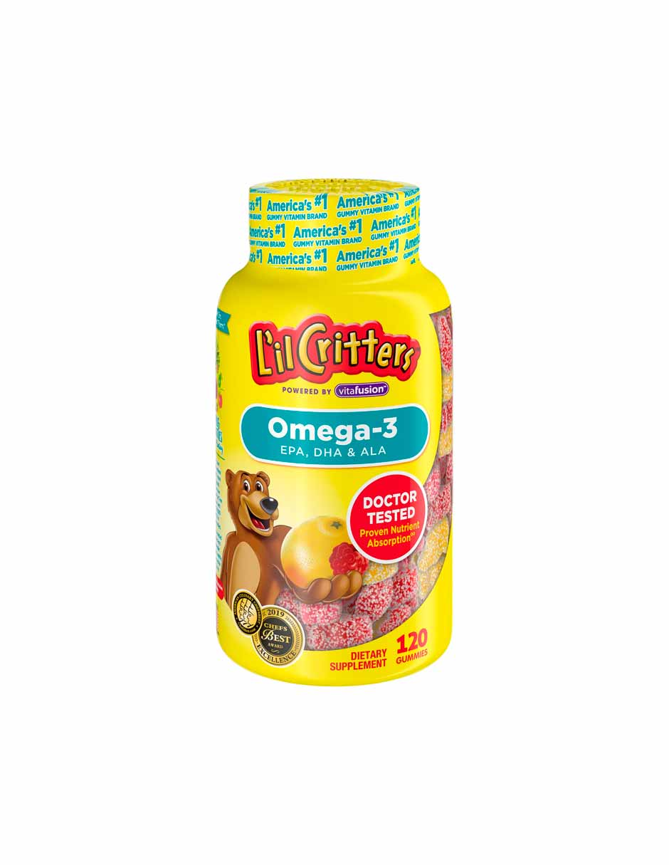 Nutrientes omega-3 para el cerebro y los ojos* y un refuerzo de vitamina A, vitamina C, vitamina D y vitamina E