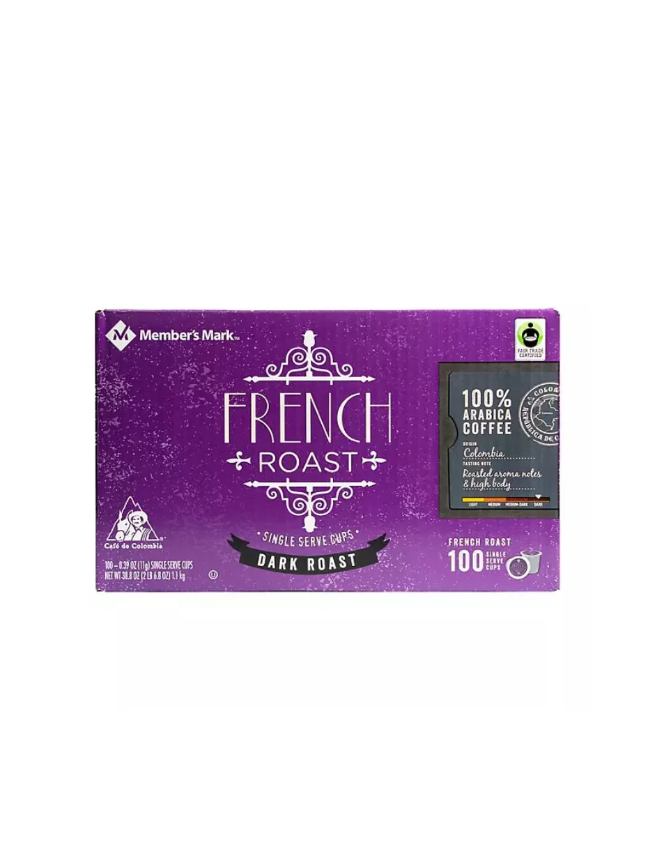 El café tostado francés Member’s Mark™ tiene un sabor rico, audaz y robusto que es perfecto para tu bebida matutina. Estas tazas monodosis están hechas con café 100 % arábica y son compatibles con todas las máquinas de preparación monodosis. 100 tazas individuales de café tostado francés por caja. El café tostado francés Member’s Mark™ combina bien con alimentos para el desayuno, como muffins, croissants y galletas.