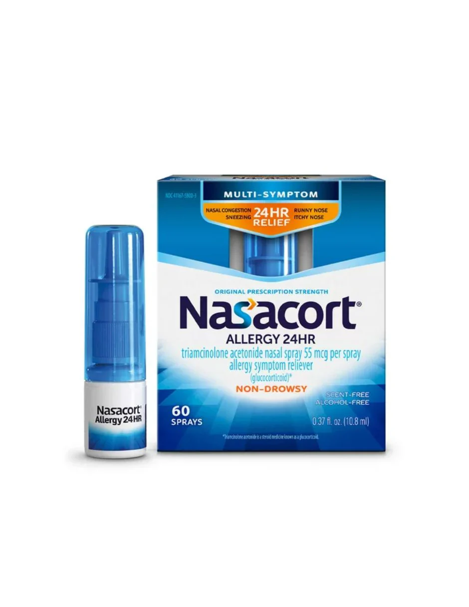 - Nasacort Nasal Spray brinda 24 horas completas de alivio de los peores síntomas de alergia nasal, como la congestión