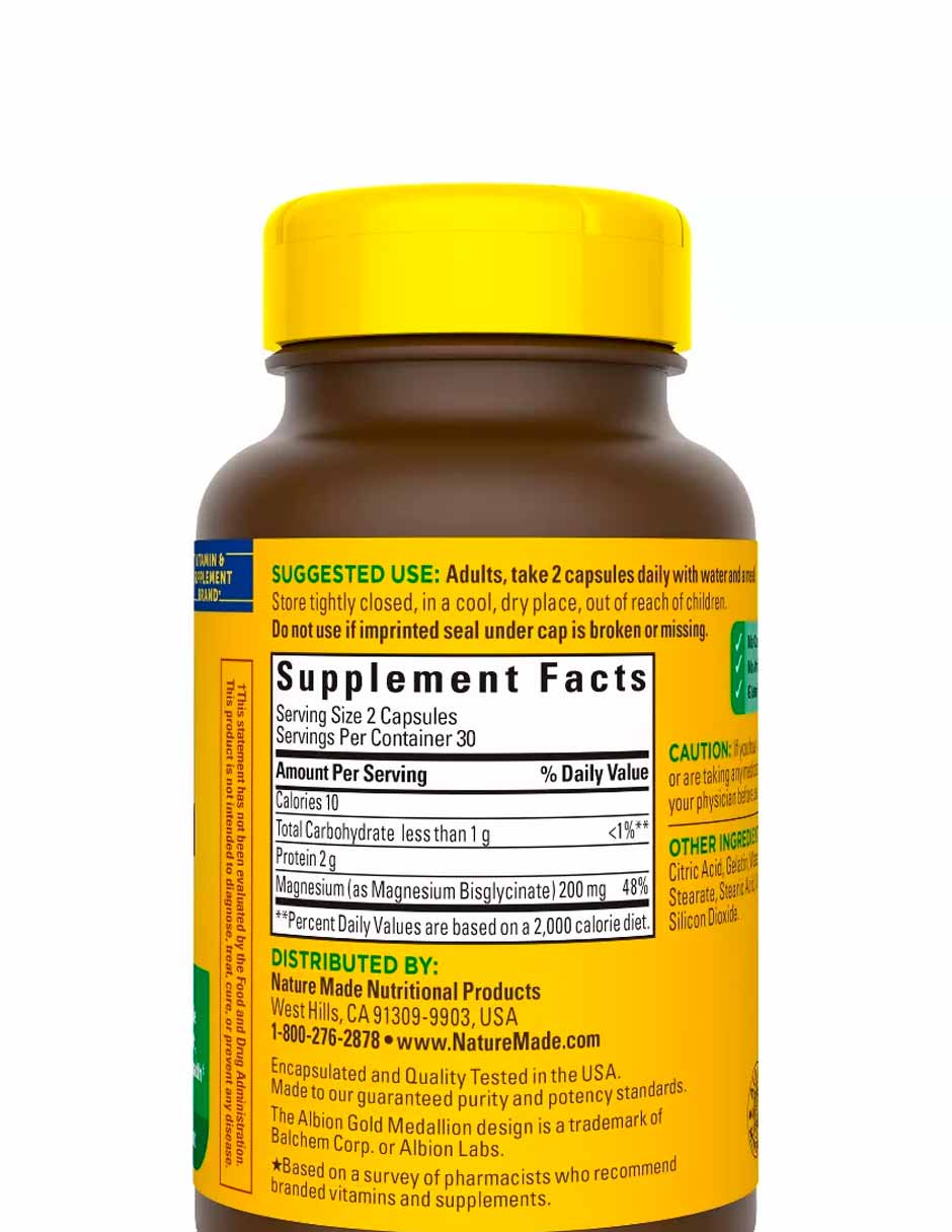 El glicinato de magnesio ayuda a relajar el cuerpo, tiene una mejor absorción que otras formas de suplementos dietéticos de magnesio y es suave para el estómago.