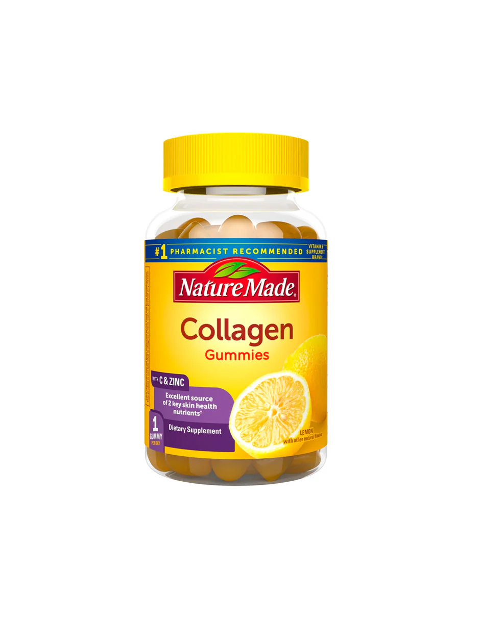 - Las gomitas de colágeno Nature Made vienen en un delicioso limón con otros sabores naturales y están hechas con pectina, no gelatina.