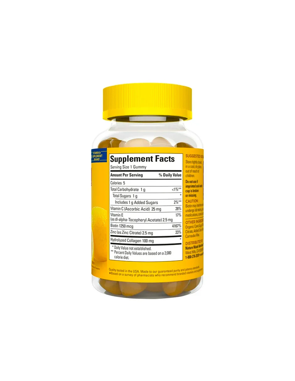 - Suplemento de apoyo a la salud de la piel: contiene una botella de 60 gomitas de colágeno Nature Made para un suministro de 60 días.