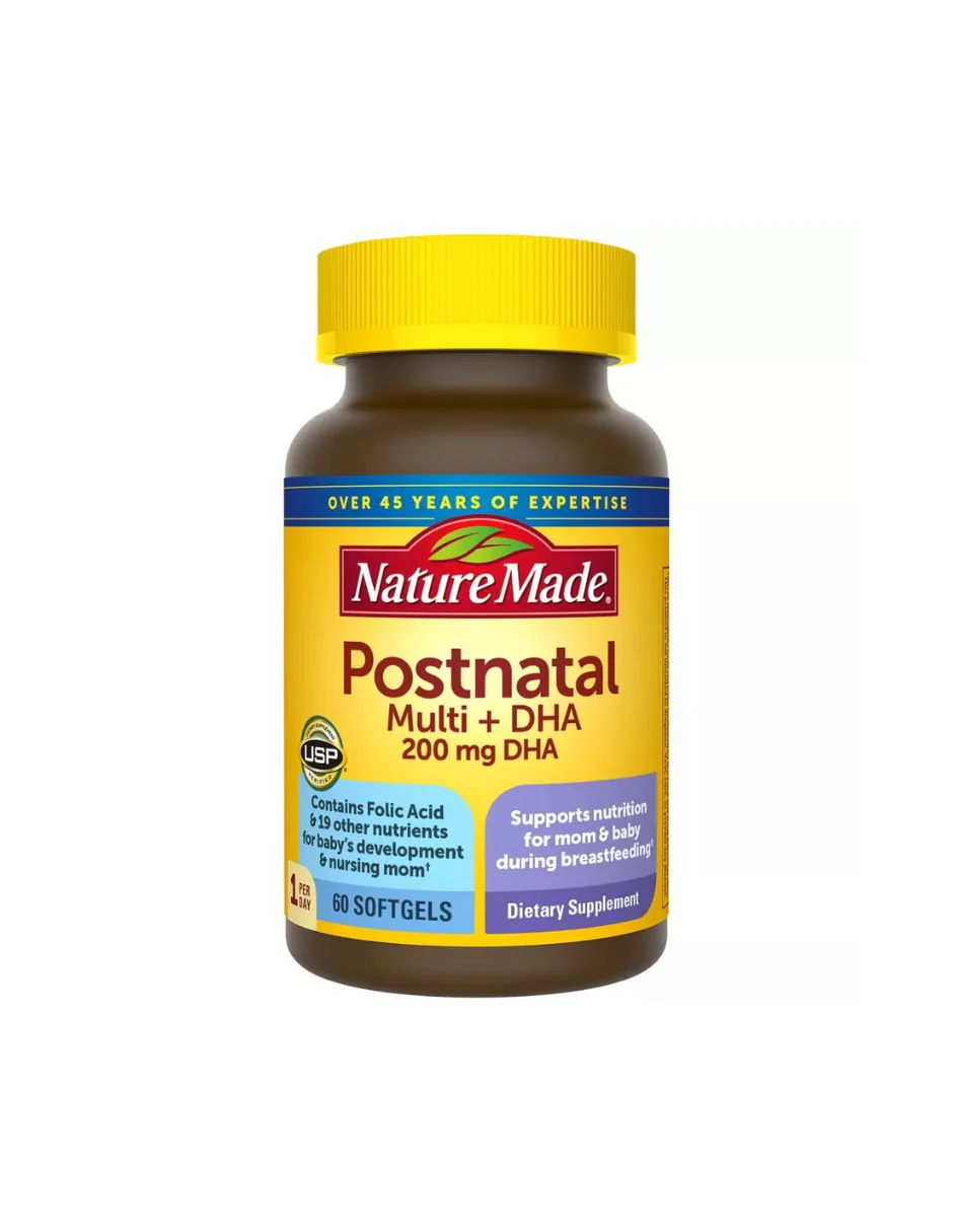 Proporciona 200 mg de DHA, un ácido graso Omega-3 que ayuda a favorecer el desarrollo del cerebro y los ojos del feto.