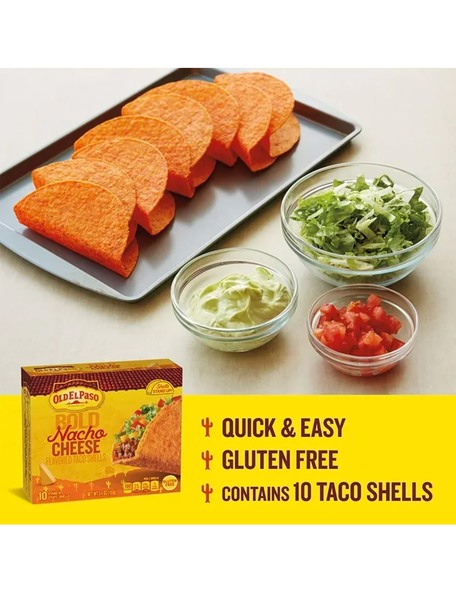 - SABOR ADELANTE: Estos 10 tacos sin gluten están recubiertos con un atrevido sabor a queso nacho para darle vida a la noche de tacos.
