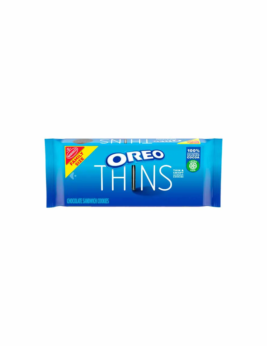 - Este paquete contiene un paquete familiar de 13.1 oz de galletas de sándwich de chocolate OREO Thins (el empaque puede variar)