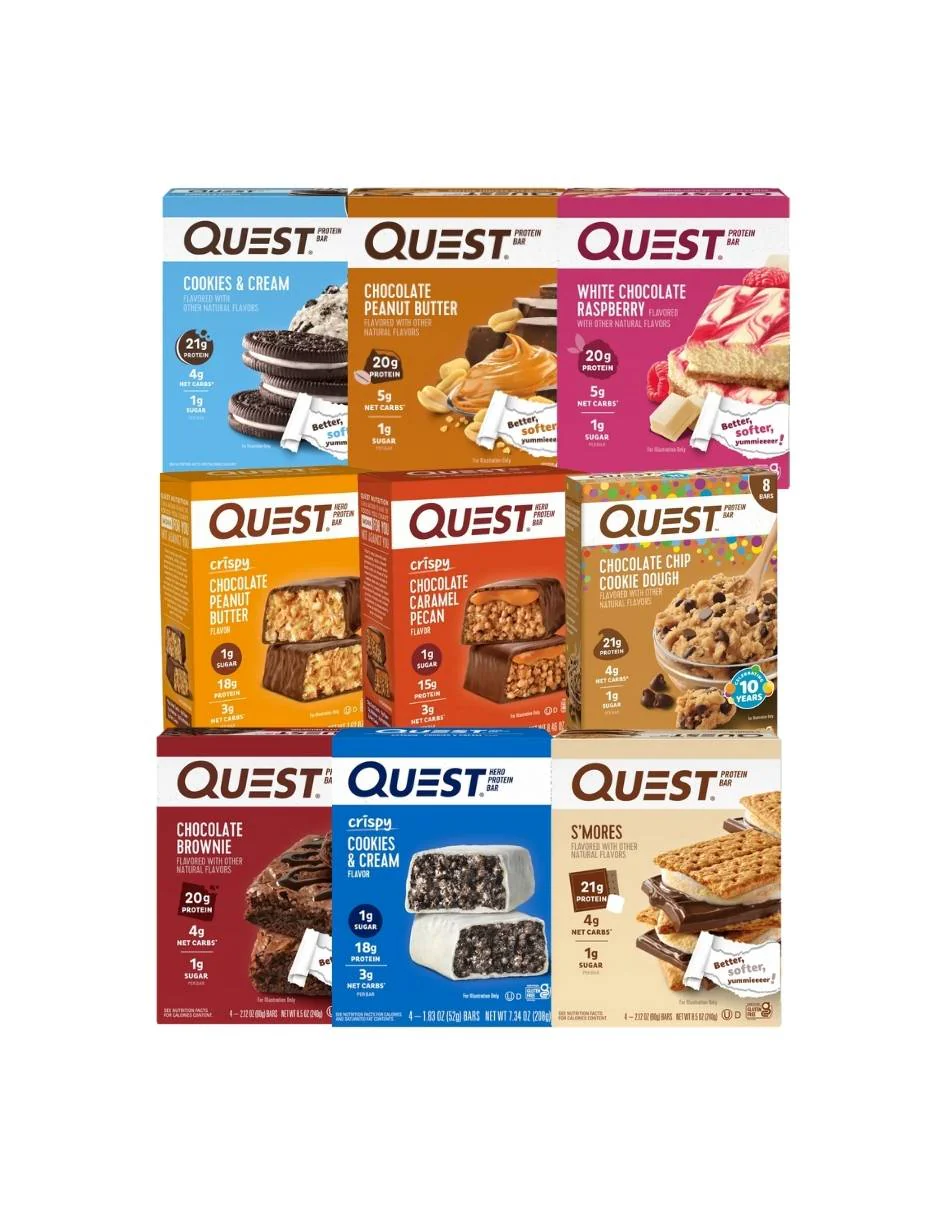 Las barras de proteína Quest Chocolate Chip Cookie Dough están envueltas individualmente y empaquetadas con 21 g de proteína por porción. Haciendo de estas barras de proteínas una forma rápida y conveniente de aumentar su ingesta diaria de proteínas. ¡Son perfectos para bocadillos para llevar, recogerme por la tarde o cualquier otra cosa!