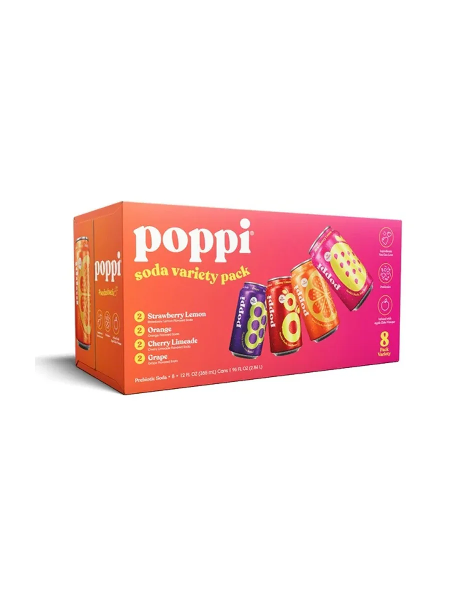 Poppi combina sabor y bienestar con vinagre de sidra, prebióticos y solo 5g de azúcar. Refrescante opción diaria con 35 calorías o menos.