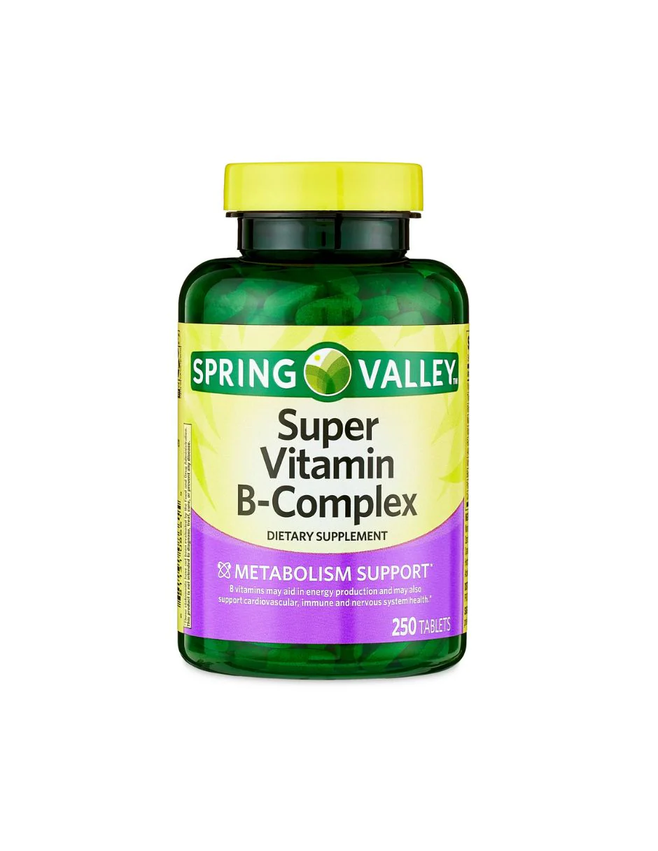 Las tabletas de suplemento dietético Spring Valley Super Vitamin B-Complex están formuladas para apoyar el metabolismo.