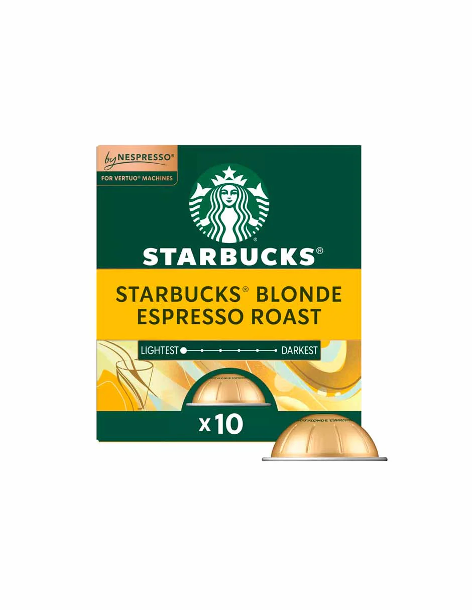 Disfruta del café Starbucks que amas con esta caja de 8 cápsulas espresso de café tostado rubio Starbucks Blonde Espresso Roast para máquinas Nespresso Vertuo