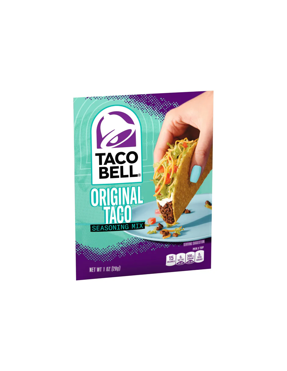Taco Bell Original Taco Seasoning Mix trae el sabor de Taco Bell a su hogar con un paquete de condimentos fácil que condimenta la noche de tacos. Este paquete de condimentos presenta emocionantes sabores al estilo mexicano que toda la familia puede disfrutar. Condimente su carne molida de res, pollo o cerdo con este condimento para hacer que sus tacos suaves o crujientes estallen con el sabor de Taco Bell. Después de dorar la carne seleccionada, agregue el paquete de 1 onza de mezcla de condimentos y agua, y déjelo hervir a fuego lento. Este condimento agregará un sabor emocionante a su cena de tacos y animará sus papilas gustativas, haciendo que la noche de tacos sea la mejor que jamás haya tenido.