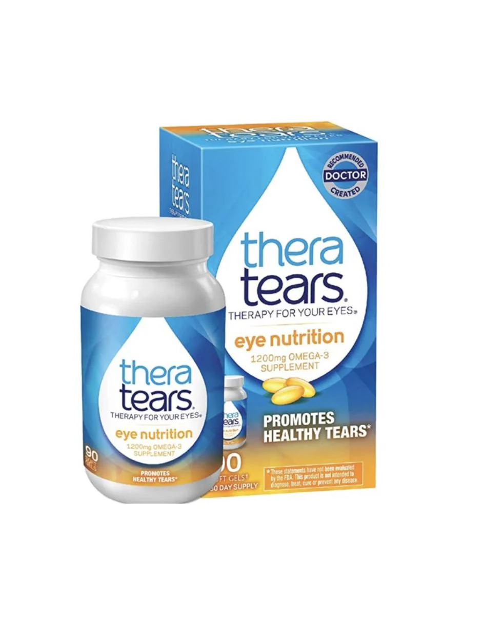 TheraTears Dry Eye Therapy es un suplemento dietético formulado por oftalmólogos con omega-3 de alta calidad, aceite de linaza orgánico y vitamina E, diseñado para apoyar la salud ocular y promover una producción natural de lágrimas más saludable.*