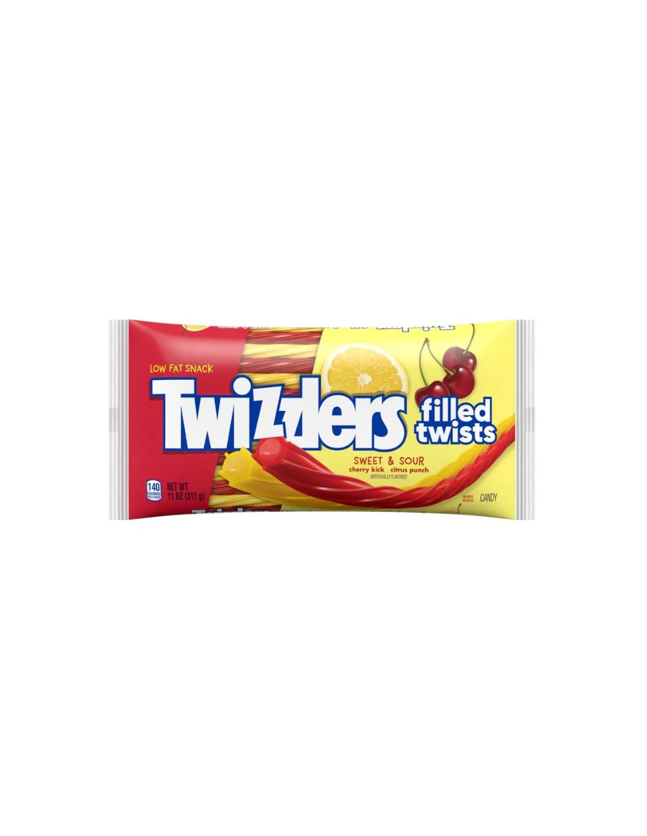Cuando necesite una explosión completa de sabor afrutado, TWIZZLERS Filled Twists Cherry & Citrus Flavored Sweet & Sour Chewy Candy es el bocadillo perfecto para llevar.