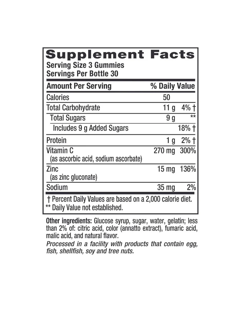 Las gomitas Vitafusion Power Zinc combinan 15 mg de zinc de alta potencia y 270 mg de vitamina C en cada porción de dos gomitas. Son una forma deliciosa y conveniente de fortalecer tus defensas naturales.