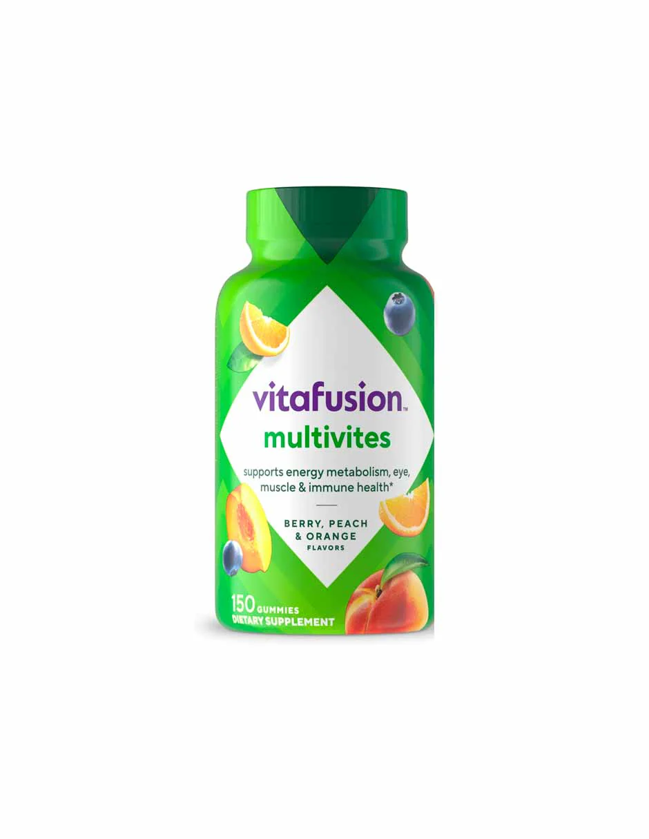 Un frasco de 150 unidades de multivitaminas gomosas Vitafusion MultiVites para adultos, suficientes suplementos dietéticos para 75 días