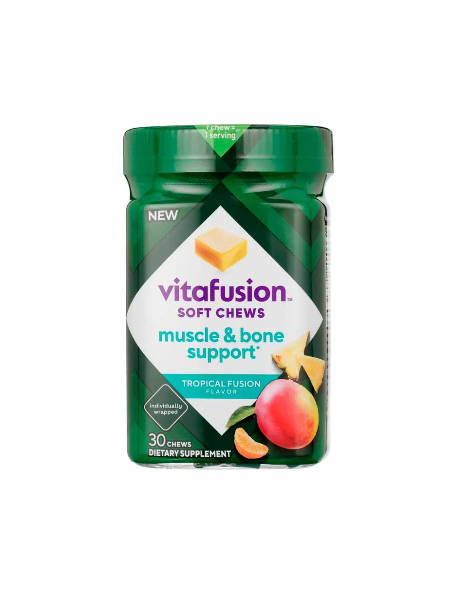 Un frasco de 30 unidades de suplementos masticables Vitafusion Soft Chews Muscle & Bone Support(1) sabor Tropical Fusion envueltos individualmente, suministro para 30 días
