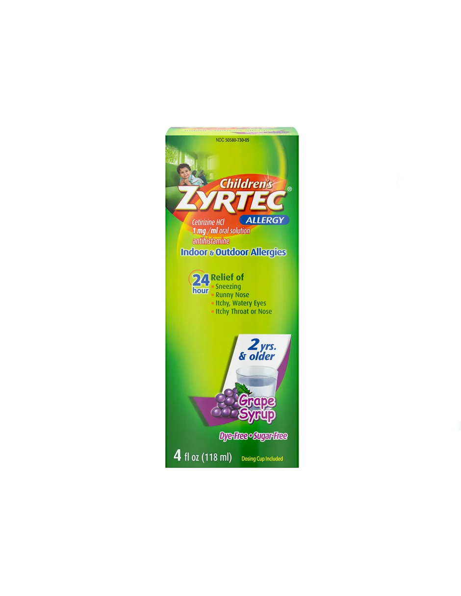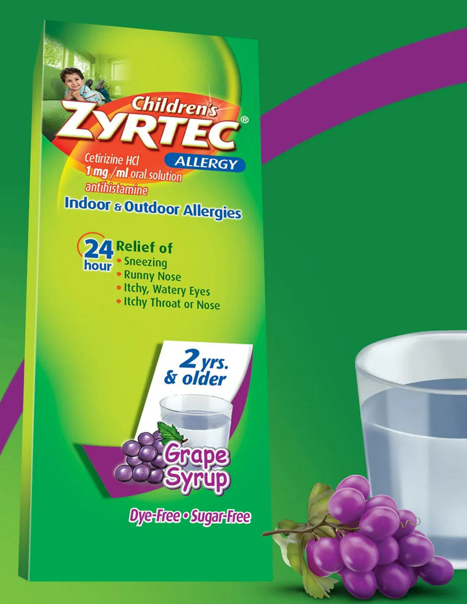 Children’s Zyrtec Allergy Syrup ofrece un potente alivio de los síntomas alérgicos en interiores y exteriores durante todo el día. Su fórmula contiene 5 mg de cetirizina por cada 5 ml y está diseñada especialmente para niños de 2 años en adelante.